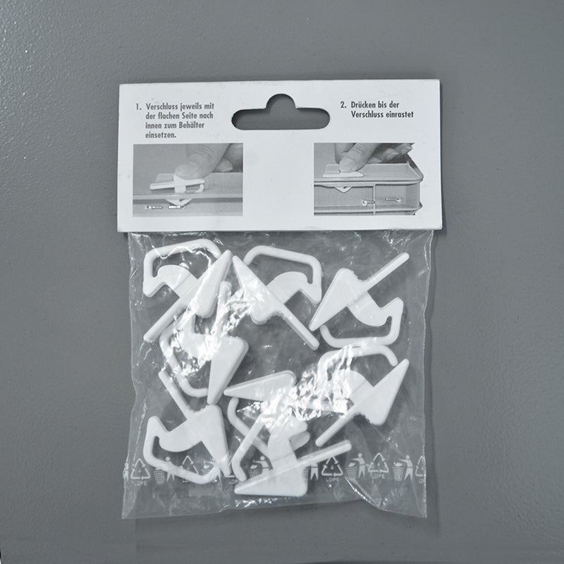 This is a locking mechanism part for plastic containers made in Germany.