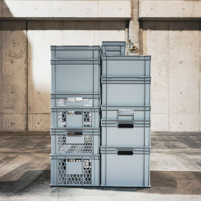 These lightweight, sturdy containers are used in Europe for logistics and are available in deep, shallow, and collapsible sizes in a variety of capacities, large and small.