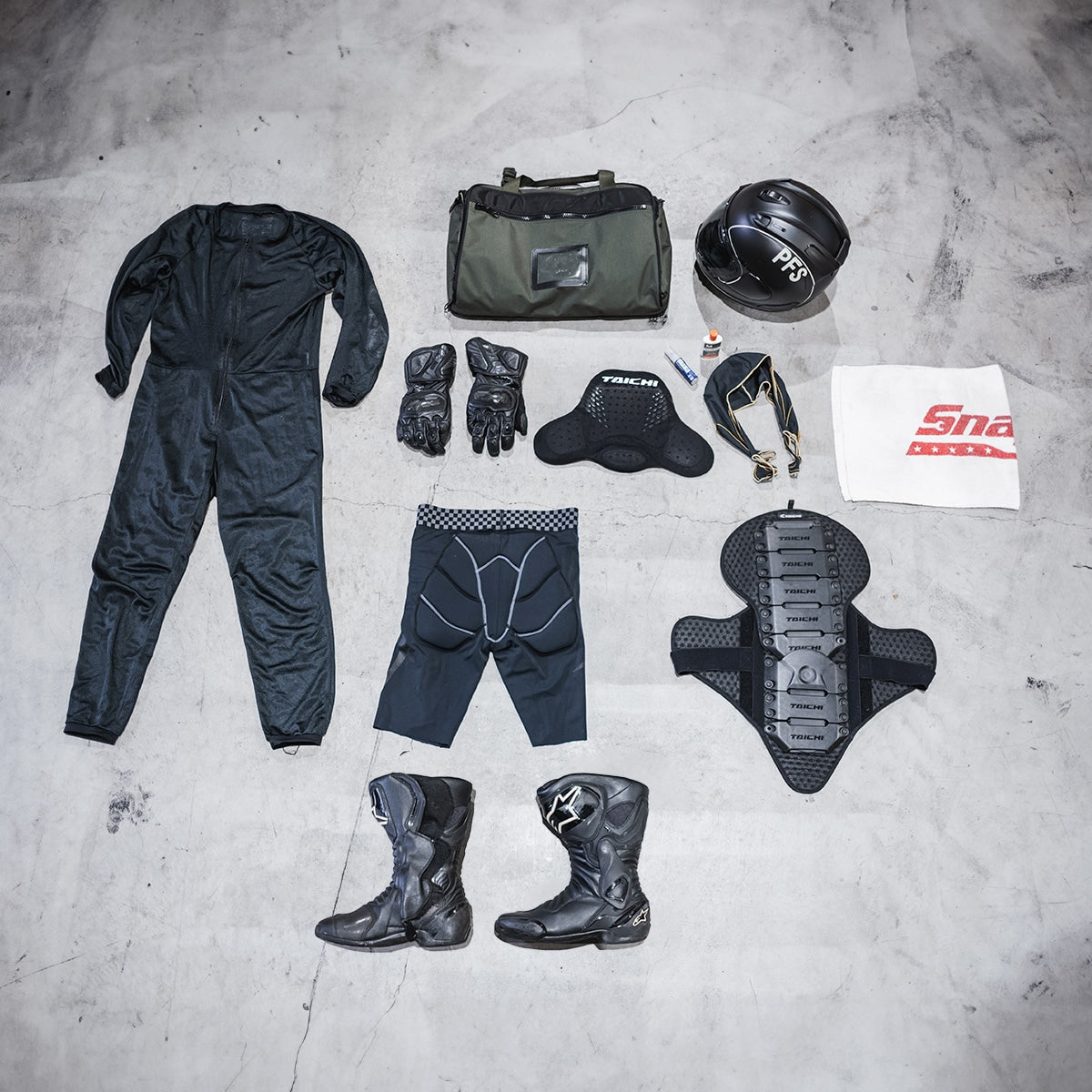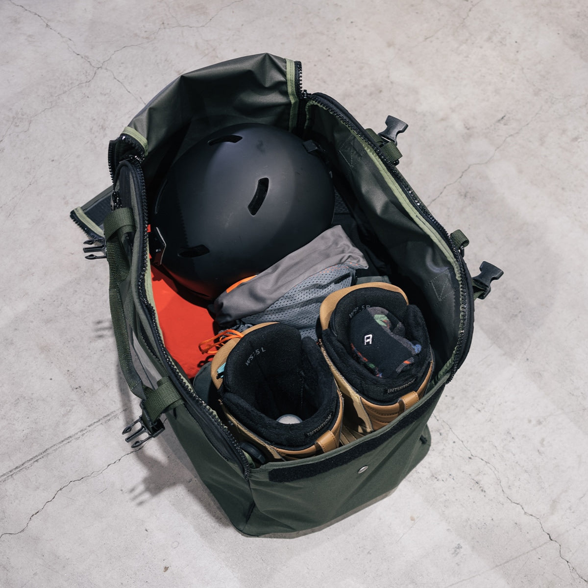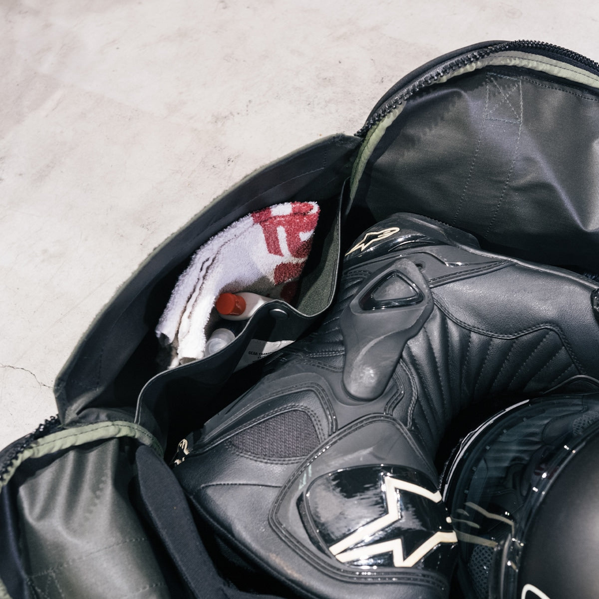 ヘルメット、ブーツ、グローブ、交換バイザー、衝撃吸収パッド類、アンダーウェア、ゴーグルなどがこれ一つにまとめて収納できます。