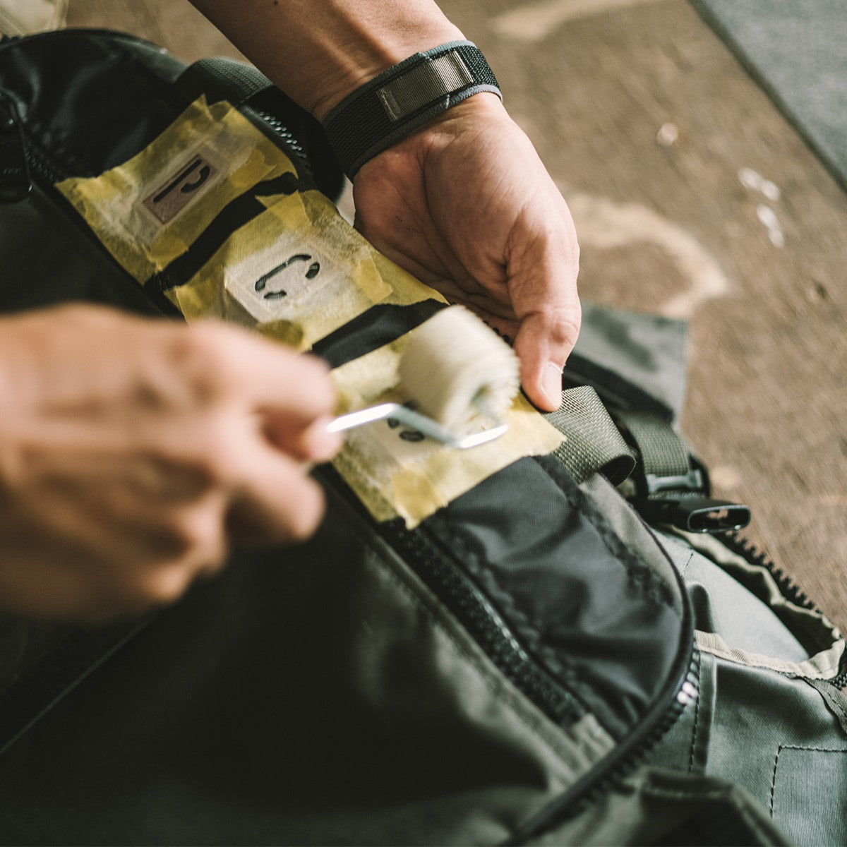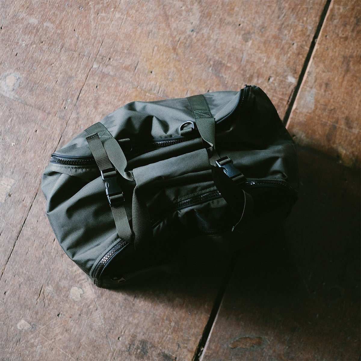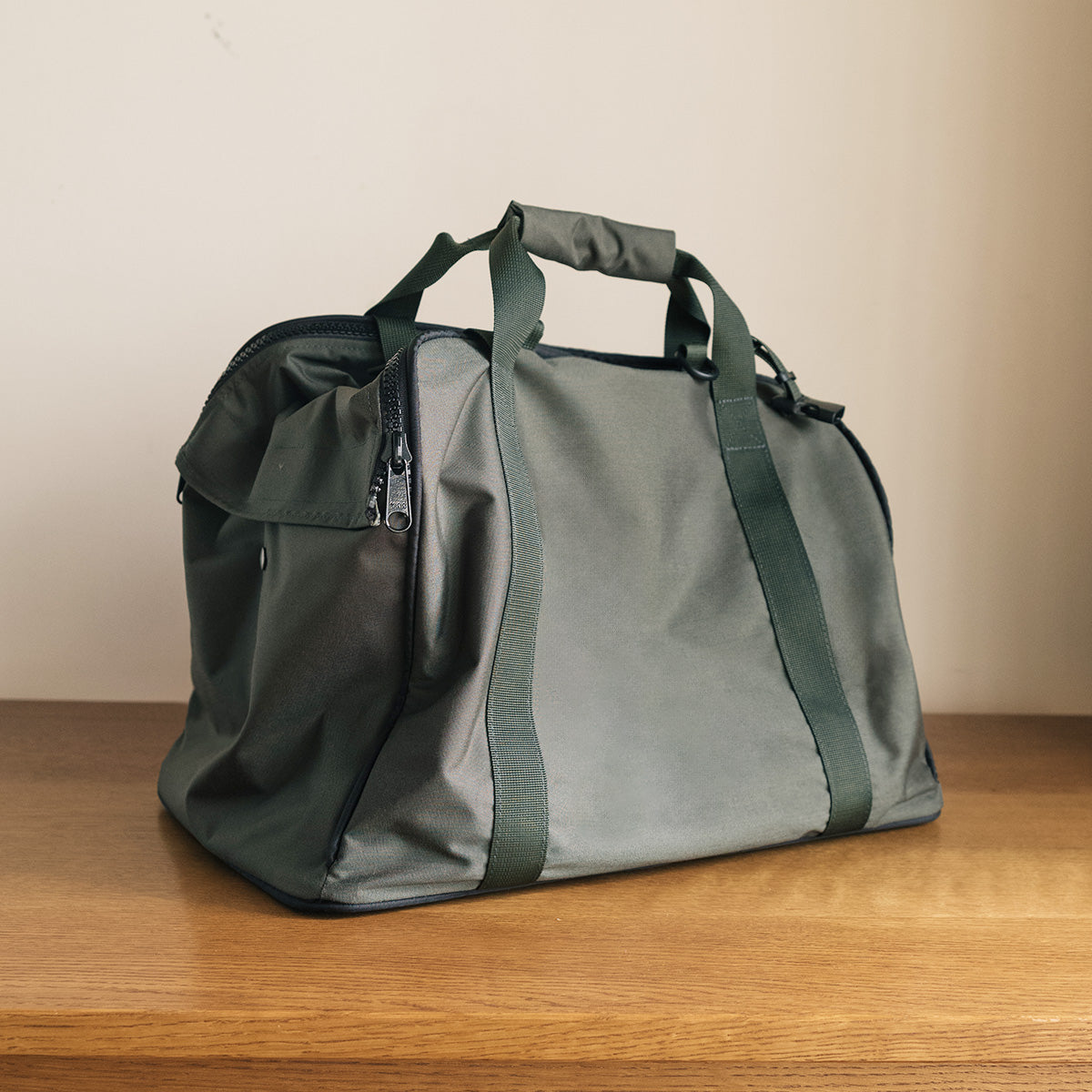 大きく開閉するので、しまいやすく取り出しやすい仕様になっています。底が頑丈な作りになっているので、キャンプやアウトドアなど、様々なアクティビティで活躍します。自衛隊のバッグ製作も行う工場で作った日本製です。
