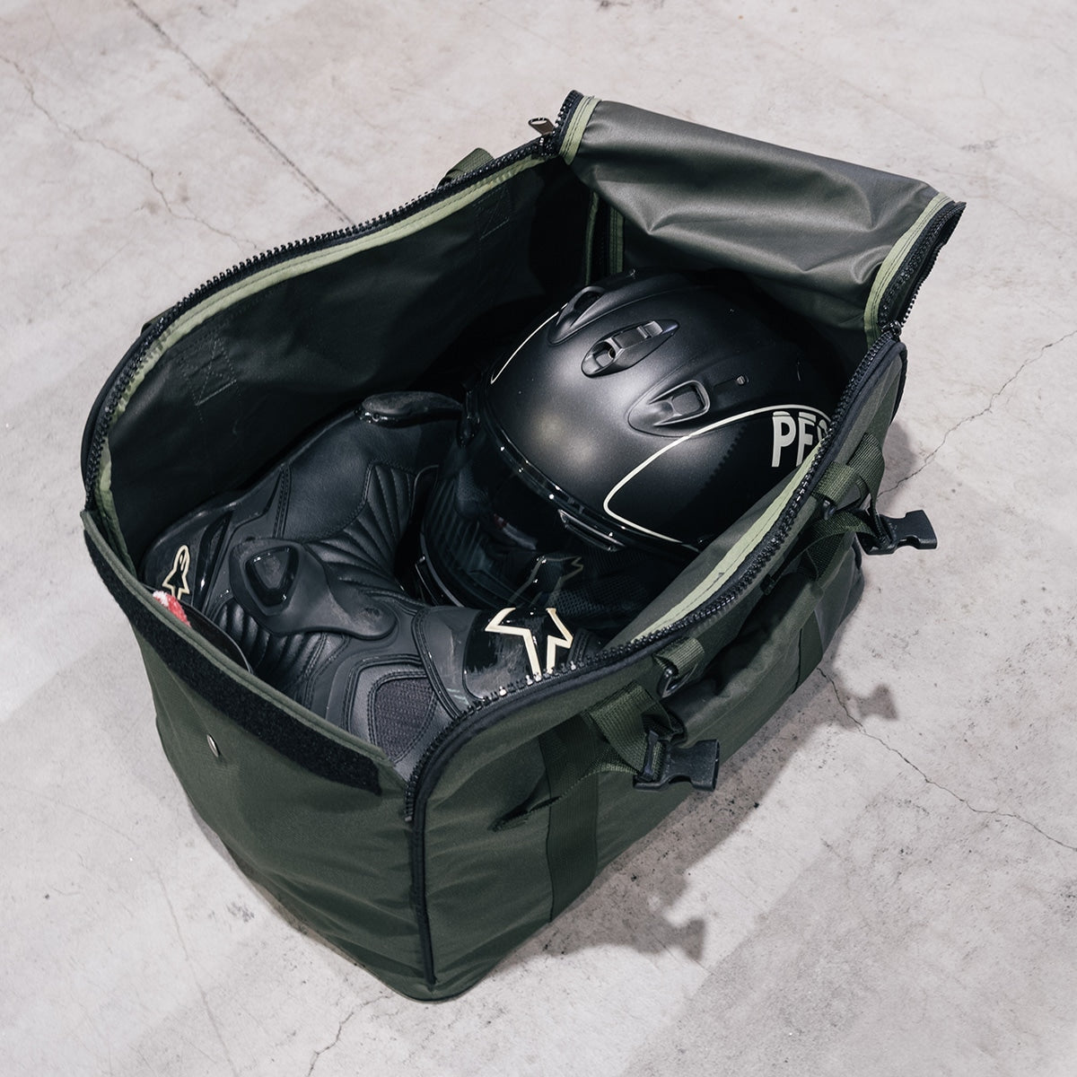 This gear bag is perfect for motorcycle racing, snowboarding, and other activities that require a helmet and boots.
